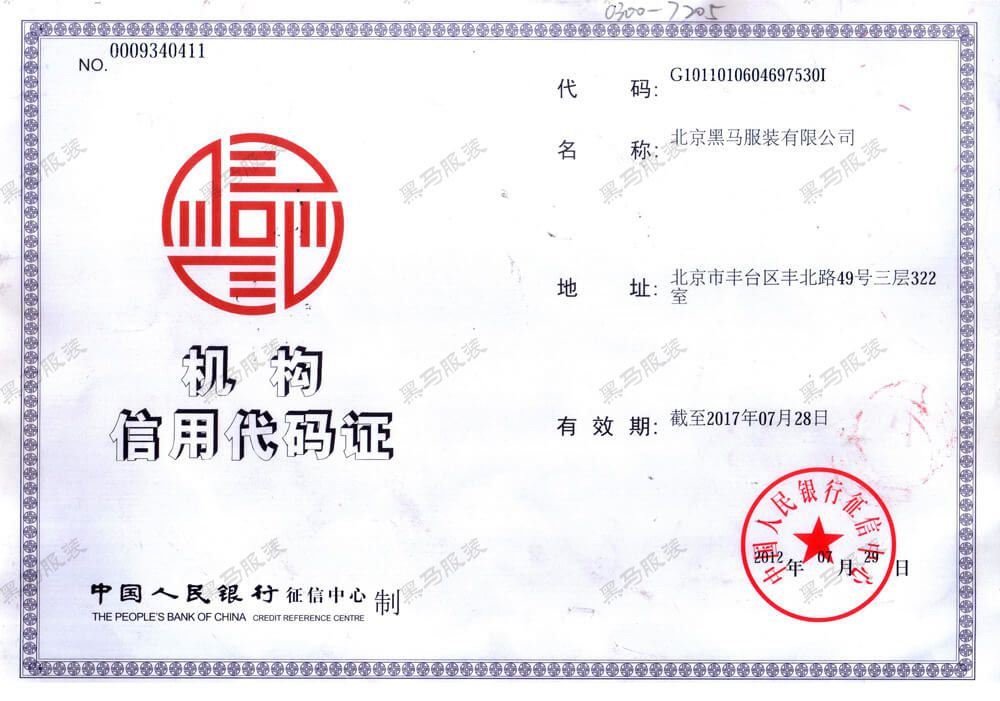 組織機構代碼證 黑馬服裝稅務登記證 黑馬服裝機構信用代碼證