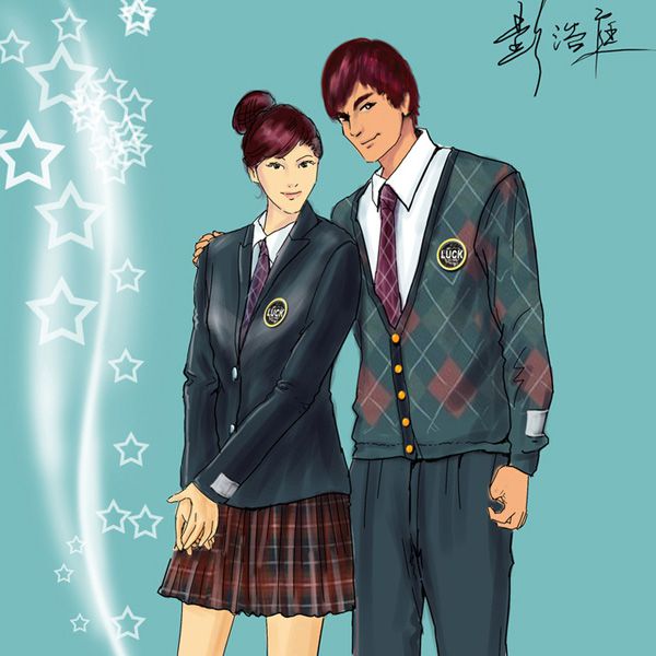“簡(jiǎn)便、高貴”是本套校服的詮釋?zhuān)7?jiǎn)介且裁剪合身的款、獨(dú)特的含蓄氣質(zhì)旨在強(qiáng)調(diào)“博學(xué)、雅正”的內(nèi)在含義。藍(lán)色小西服寓為海洋般寬廣的心胸,卡其色毛衣與百褶裙簡(jiǎn)介、大方。